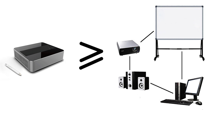 LED light source been applying, avoiding of bulb consumable items problems, which solved the biggest maintenance problem of traditional projector. Ultra short focus, which avoid the Shadows shade problem of short and long focus projector.